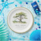 Elegant Minimal Green Watercolor Oak Tree Wedding Paper Plate