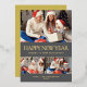 Elegant Minimal Happy New Year Family Photo Foil Holiday Card