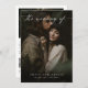 Designed for style-minded couples, this modern minimalist photo wedding invitation blends refined serif type with soft script across deep forest tones. The front is a full-bleed image; the reverse features another favourite photo, your event details, and a QR code linking to your wedding website for effortless RSVP, travel, and schedule info. Easily edit the text and upload your images for a polished, premium look that complements boho, rustic chic, and destination woodland weddings.