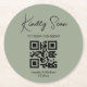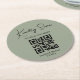 elegant minimal qr code wedding menu green round paper coaster