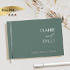 Elegant wedding guest book in a sleek, modern, and minimal design with smooth velvety deep green hardcover and real foil details in the foil colour of your choice. Foil in gold, silver, or rose gold. Design with the ability to add any text you like on the front, spine/side, and back. If you prefer the back without any text, please leave their corresponding template text boxes blank. Part of our "Modern Elegant Typography Green Collection" with many coordinating products.