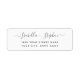 Modern, elegant return address labels, perfect for any event such as weddings, birthdays, RSVP's etc. With an elegant, off-black calligraphy font for your name and modern sans serif for address details, these can easily be customised with your details by using the Personalise option. Please note that to keep the swirls in the names, you must enter your details between the two square boxes.