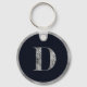 Elegant Minimal Silver & Black Custom Monogram Key Ring