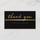 Say thank you for the gifts you have received from the friends and acquaintances that came to your special function bearing gifts with this elegant, minimal thank you card. A 'thank you' in a faux gold handwriting/calligraphy font on a black surface with a faux gold bar and your name on one side and a simple thank you text on the other.