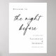 Set the stage for a memorable rehearsal dinner with our Elegant Minimalist 'The Night Before' Welcome Sign. Featuring a sleek and modern design, this poster adds a touch of sophistication to your event decor. Perfect for welcoming your guests and setting the tone for the evening ahead, this poster is sure to make a stylish statement. Elevate your rehearsal dinner with our Elegant Minimalist 'The Night Before' Welcome Sign and make your guests feel right at home.