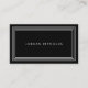 An elegant business card with minimalist appeal, this simple design has a triple frame in white surrounding your name in modern sans-serif type face on the front of the card. The black background colour can be changed to any other colour. The back has a convenient text template with standard business information that you can personalise with your details. To make additional edits choose "customise further" at the bottom of the text template. You can move the text, add or delete lines of text, change the font and font colour, etc.