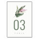 Elegant Minimal Tropical Leafy Pink Floral Wedding Table Number