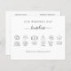 Elegant minimal white and black wedding timeline program with beautiful delicate timeline icon images and elegant modern handwritten calligraphy details. Ability to select customise and move around timeline images and text to suit your own wedding timeline, simply drag and move. Personalise dinner image with menu on the centre with your own initials. Ability to change front and back white background colour to other colours by selecting editor tool to customise further. Customise the back with your wedding party, wedding program or any details you like!
