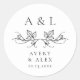 Elegant Minimal White Black Monogram Wedding Crest Classic Round Sticker