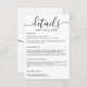 This modern and elegant wedding details card is perfect for the contemporary couple. It features a pretty and trendy black monogram initial design with matching typography on top of a simple white background. It's minimalist, stylish, personal, and unique for your special event!
