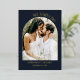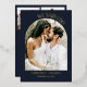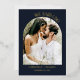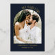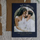 Elegant sage green and gold wedding announcement template card with hand lettered typographic overlay text with swirls that states "we said i do" with your names in gold and blue navy. Add 3 images to this product to make it your own. The photo will be placed on the reverse of the card alongside your wedding photograph and your desired message.