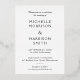 Elegant, minimalist, typographic design with black and warm rose gold real foil lettering. The back of the invitation features black elegant script with your wedding details.