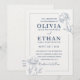 Elegant Minimalist Blue Floral Sketch Wedding Invitation