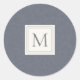 Elegant Minimalist Blue Grey Faux Linen Monogram Classic Round Sticker