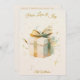 Send a touch of refined holiday cheer with this minimalist Christmas card featuring a delicate illustration of a gift box wrapped in soft gold and ivory tones. This elegant design conveys a warm, peaceful holiday message, perfect for sending love and joy to family and friends. The customisable back includes space for a heartfelt note, creating a timeless keepsake. Ideal for those who appreciate a modern, uncluttered aesthetic this holiday season.