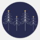 Elegant minimalist Christmas tree design blue Classic Round Sticker