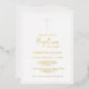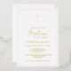 This sophisticated real gold font cross baptism invitation is ideal for a contemporary baby baptism. The straightforward design incorporates traditional minimalist gold and white font with a rustic bohemian vibe. Any colour is possible. Keep the design simple and elegant as is, or customise it with your own designs and artwork.