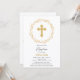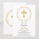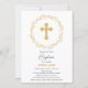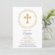 Elegant Minimalist Gold Cross Wreath Baptism Invitation