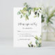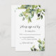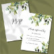 This elegant and minimalist wedding response card features gorgeous watercolor eucalyptus, greenery, botanicals and foliage in various tones and shades of green. Elegant script calligraphy for rsvp and please respond by text areas and simple, easy to read serif font for additional response card details.