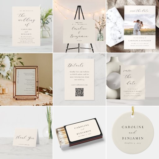 Elegant Minimalist Script Ivory Cream WeddingDesigned by Opal Ellery