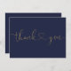 Elegant Minimalist Navy Blue And Gold Script Heart Thank You Card