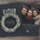 Elegantly wish your loved ones a merry Christmas with these charming hand illustrated navy door and wreath cards. Add your own photo to the back.