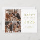 Elegant Minimalist New Year Cheers Family 3 Photo Holiday Card
