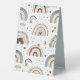 Elevate your event décor with this modern rainbow table tent sign featuring a whimsical pastel rainbow and star pattern. The elegant blush and muted red typography create a stylish and versatile design, perfect for weddings, baby showers, birthday parties, or any celebration. Crafted for both casual and formal events, this table number sign combines playful illustrations with modern minimalist elegance. Ideal for adding a chic touch to your tabletop décor, this tent card is a must-have for creating a cohesive and inviting atmosphere. Use it for table numbers, reserved seating, or personalised signs to guide guests with ease.