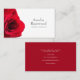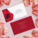Elegant business card with a red rose, a minimalist clean design layout, perfect for florists, cosmetologists, wedding planners, event organizers, or any business that requires an elegant appearance. This template can be easily customised with your own layout, address, email address, social media address, phone number, and mobile phone number.