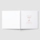 Elegant, classic rose gold tone and white Wedding keepsake Guest Book features a chic design in timeless rose gold pink on a transparent background. Two delicate decorative flourishes each containing a single heart envelope the name of the bride and groom and symbolise that two hearts become one. Traditional wording provides timeless yet modern sophistication. Personalise wedding design with your details in beautiful rose gold colour lettering and script. Couples married names and wedding date accent the side spine of the book. The back of the book reflects simple minimalist design and is solid in colour.