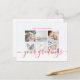 Personalised 6 family photos Red Universal Greetings Postcards featuring a stylish photo collage with 6 customised images, your greetings message in elegant handwritten script font, your name, date, year, message on the back in a modern and simple sans serif font. Create your own greetings postcards with this elegant template, perfect for thank you cards, merry christmas, postcards, wedding and bridal shower thank you cards, baptism, first communion, birthday, baby shower and any special celebration.