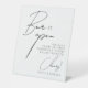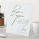 Elegant Minimalist Script Funny Wedding Drinks Pedestal Sign saying “bar is open”