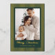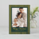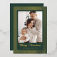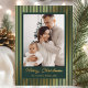 Share your holiday wishes with this traditionally elegant photo card, perfect for sending warm cheer. The rich forest green background is beautifully contrasted by bold, striking vertical stripes and framed details, all rendered in luxurious gold foil. The festive "Merry Christmas" script also shines in gold foil, giving your family photo a truly classic and upscale presentation that captures the spirit of the season.