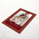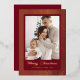 Make a truly grand and festive statement this season with this richly colored photo card. The background is covered in striking vertical stripes, all shimmering brilliantly in luminous gold foil against a deep red base. Your favorite family photo is elegantly framed on a rich burgundy panel, where the handwritten "Merry Christmas" script also gleams in beautiful gold foil, creating an undeniably luxurious and traditional greeting.
