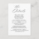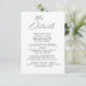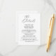 Share all your important wedding information with this elegant minimalist details card. Featuring classic black typography on a clean white background, this design is perfect for modern and timeless weddings alike. Personalize easily with your ceremony, reception, accommodation, and transportation details. Ideal for couples seeking a simple yet sophisticated style to complete their wedding stationery suite.