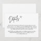 The "Elegant Minimalist Wedding Details Enclosure Card" combines timeless elegance with modern simplicity. Designed for couples who value understated beauty, this card provides important wedding details like directions, accommodations, or special instructions with clarity and grace. Its refined design complements any invitation suite, adding a touch of sophistication without overwhelming the aesthetic. Perfect for a chic and seamless wedding experience, this card ensures that every detail is shared effortlessly, leaving a lasting impression on your guests.