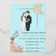 Elegant and modern wedding invitation with a romantic bride and groom illustration, soft pastel colors, and floral gold accents. Perfect for couples looking for a timeless and customizable design for their special day. You can easily edit all text fields names, date, and location make it uniquely yours. to