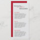 Impress your guests with our “Elegant Minimalist With Red Accents Wedding Menu.” This stylishly simple design features the couple’s names in a classic typewriter font in black, united by a fancy red “and” symbol. The menu details are presented in a clear black caps font, with the meal headings highlighted in red for a striking effect against the light gray background. The back of the menu maintains the elegant theme with a bold red background, showcasing the couple’s names and the fancy “and” symbol in a sophisticated arrangement. Perfect for adding a chic and minimalist touch to your wedding dining experience.