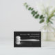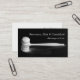 An elegant and minimalistic business card in black and white and dark grey with a gavel.