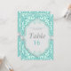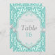 Elegant Mint and Grey Table Number Card. Created with seafoam green, aqua & grey with an antique lace style, this design is great for elegant and traditional style weddings. Additional coordinating wedding supplies are available at MetroEvents on Zazzle.