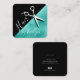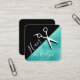 This modern hairstylist business card design features scissors, mint blue faux metallic texture & black background and elegant calligraphy font.