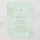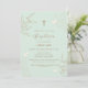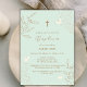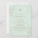 Elegant Mint Gold Leaves Butterfly Cross Baptism Invitation