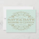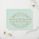 Fresh and refined, this no-photo save the date features an elaborate gold scrollwork flourish frame on a soft mint blue-green background. The warm gold filigree against the cool mint creates a beautifully balanced palette suited to spring, garden, or destination weddings. Available in a petite card size ideal for mailing with a full invitation suite. All text is fully customisable.