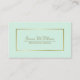 These business cards are simple, sophisticated, professional, stylish and elegant. They feature gold lettering and a faux foil gold border on a pale mint green coloured background. Perfect for a wide variety of professions, they are easily customised to meet your needs including adding your own QR code on the back.