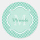 Elegant Mint Green Quatrefoil Monogram With Name Classic Round Sticker