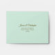 These RSVP envelopes are simple yet elegant. Designed as an A2 sized envelope to be used with 4.25" x 5.5" sized cards, they feature a pale neo mint green background with a pre-printed address on the front in elegant gold lettering. The inside flap is decorated with faux foil gold lace frills. Wonderful way to make it easier for your guests to return their response cards.
