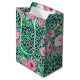 Elegant Mint Leopard Print and Floral Design Medium Gift Bag