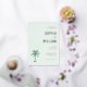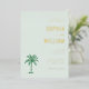This elegant foil invitation features a soft pastel mint green background with gold script and serif typography, creating a sophisticated and serene atmosphere. The design includes a stylized palm tree illustration in darker green, adding a tropical touch to the layout. Perfect for weddings, this customizable template offers ample space for event details while maintaining a clean and modern aesthetic. Its balanced composition and warm tones convey an inviting mood, making it ideal for celebrating special moments.