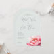 This elegant wedding invitation features a soft, pale mint green background that sets a calming and sophisticated tone. The design includes a large, detailed illustration of a pink peony flower on the right side, adding a touch of romance and natural beauty. Customisable script fonts highlight the couple's names, while clean serif fonts provide event details, ensuring clarity and elegance. The overall layout balances text and imagery harmoniously, creating an inviting atmosphere perfect for a formal celebration.