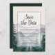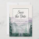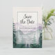 Announce your wedding date in style with this elegant, nature-inspired Save the Date. The beautiful watercolor design features a misty mountain landscape and a lush green forest. The modern calligraphy adds a touch of sophistication. Customise with your names and wedding date for a personalised announcement.